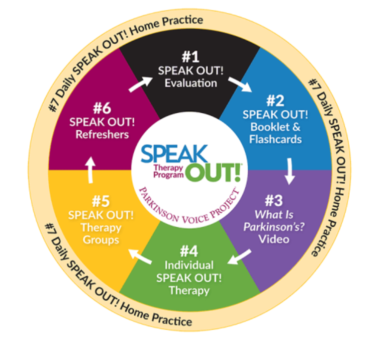 Speak Out!® consists of individual treatment sessions twice a week for 4 weeks, then transitioning to participation in Speak Out!® Group Sessions.